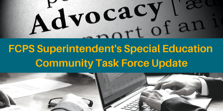Fairfax County SEPTA is pleased to announce that future meetings of the Superintendent’s Special Education Community Task Force (also known as Restraint and Seclusion Task Force) will be open to the public.